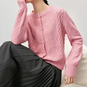 Women’s O-Neck Long Sleeve Knitted Cardigan – Casual Elegant Cropped Sweater